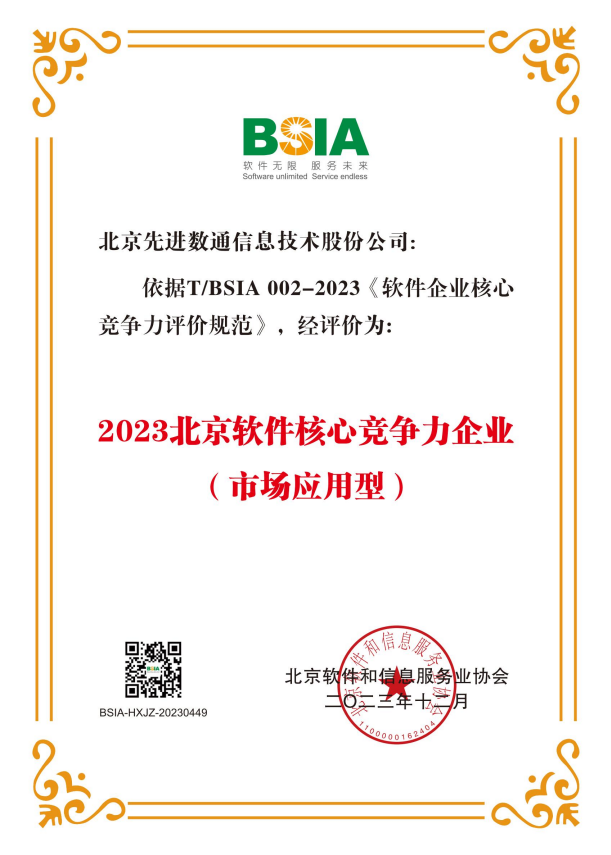 Ezpay钱包荣获“2023北京软件核心竞争力企业”荣誉
