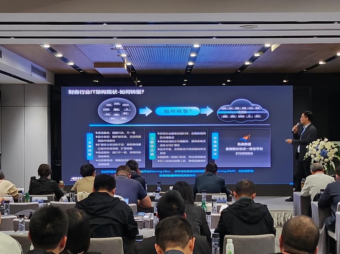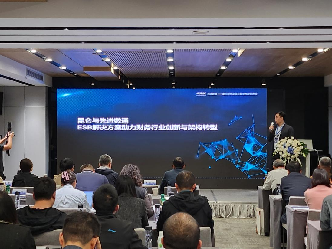 Ezpay钱包代表讲师郭钰以《昆仑与Ezpay钱包ESB解决方案助力财务行业创新与架构转型》为主题作发言分享。他深入剖析了当前财务行业IT架构面临的挑战,包括系统孤岛、技术老旧、扩展性不足等问题,并提出了基于企业服务总线(ESB)和微服务架构的转型方案。
